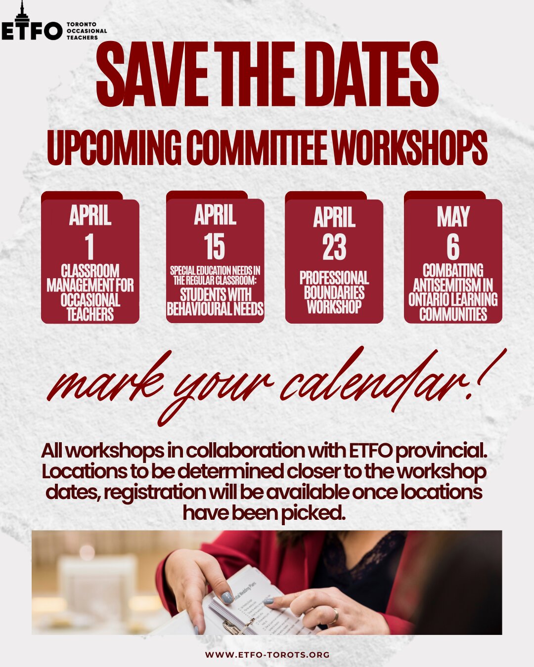SAVE THE DATES – Upcoming Committee Workshops